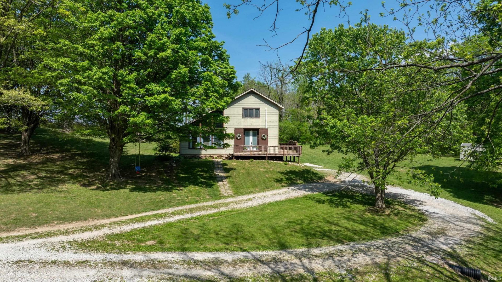 Peaceful living on 4.2 beautifully maintained acres, this inviting 2 bedroom, 1.5 bath home offers privacy and quiet. Step through the French doors into a warm, open concept living space filled with natural light, featuring exposed beams, a two story living area with floor to ceiling windows, and a spacious dining area perfect for gathering. The kitchen offers a hammered copper sink, island with breakfast bar seating, a coffee bar alcove, and two pantries, with rear doors leading to a deck ideal for relaxing or entertaining. Upstairs you will find both bedrooms along with a beautifully updated bathroom featuring dual vanities and a clawfoot tub, while a convenient half bath is located on the main level. The unfinished walk out basement provides excellent storage and garage space, with potential to create additional finished living area if desired. Outside, enjoy the wraparound deck, fire pit, large Amish built shed, and custom chicken coop, all surrounded by peaceful acreage. Notable updates include updated electrical with new panel and breakers (2022), mini split systems in bedrooms (2023), built in kitchen cabinetry and coffee bar (2022), new dishwasher (2023), fresh interior paint in bathrooms (2026), and multiple outdoor improvements.