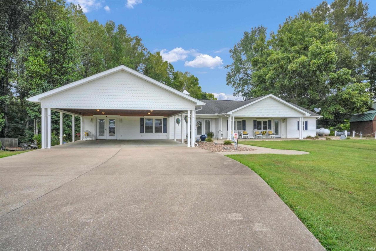Welcome to your private oasis!! This stunning 4 bedroom, 4 bath home is meticulously well maintained!! This property offers the perfect blend of comfort, space, and natural beauty, all nestled on just over an acre in a highly desirable location situated on beautiful Deer Creek with front views of the Scenic Ohio River! Step inside and you will immediately notice the details, the rich hardwoods throughout this open concept living home, adding timeless elegance and warmth, along with the custom crown molding. The kitchen features custom cabinetry, countertops, stone backsplash, and stainless steel appliances. The spacious floor plan provides both grand entertaining and quiet relaxation. Beautiful natural lighting throughout the home! This home features a loft, multiply spacious living areas featuring five beautiful gas log fireplaces throughout the home. ADT security and /Intercom system, and Fiber Optic to property. Excellent storage. Step onto the expansive screened in covered patio area, wonderful for entertaining and relaxing! This area leads to an open Trex deck, and a lower level concrete patio area featuring a custom outdoor grill. Enjoy all the amenities of having your own boat dock right in your lovely back yard Great fishing, boating, kayaking, or just soaking in the peaceful views! This homes offers another finished area of living space to the lower level with an outside entry. Attached three vehicle carport. Whether you're looking for a full-time residence or a weekend retreat, this luxury home delivers the ultimate in lifestyle and location!! This property is minutes from the Rocky Point Marina, the I64 Interstate and close to surrounding areas of Ky as well.